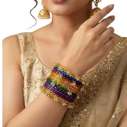 ชุดกำไลข้อมือแบบจุมกีหลากสีทองคำสไตล์แคชเมียร์สุดฮิตขายดีที่สุด เหมาะสำหรับงานแต่งงานและงานเลี้ยง ราคาขายส่งพรีเมียม
