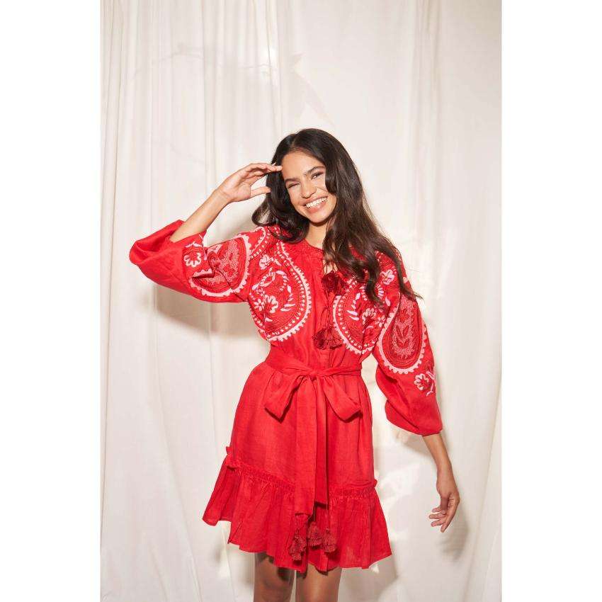 เดรสยาวปักลูกปัดหรูหราทันสมัย ผ้าฝ้ายแท้ 100% สไตล์โบฮีเมียนเก๋ไก๋ คอวี สำหรับงานปาร์ตี้ พร้อมสายผูกเอว