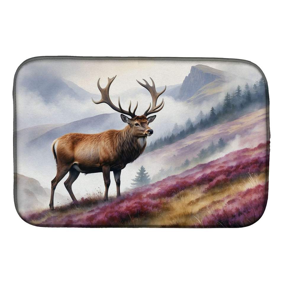 Highland 14X21 "แผ่นรองจานอบแห้งหลากสีแผ่นซับน้ำสำหรับเคาน์เตอร์ห้องครัวดีไซน์รูปกวางแดง