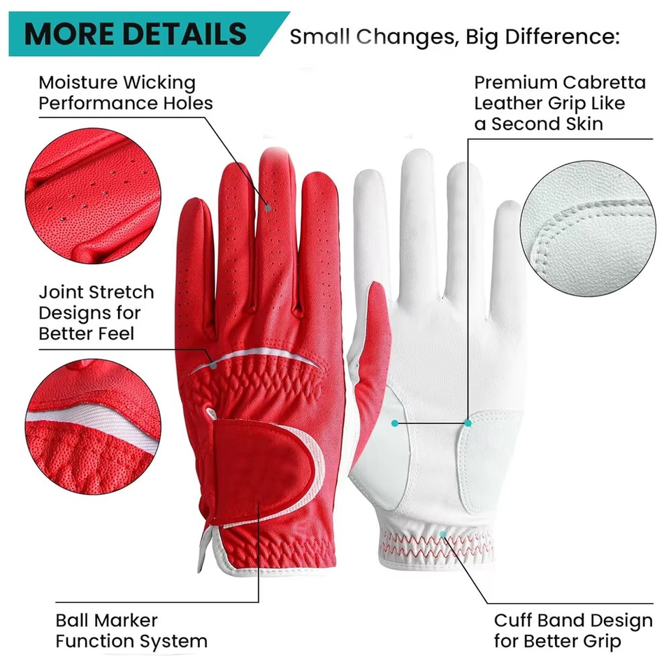 Highland ถุงมือหนังสำหรับเล่นกอล์ฟ, อุปกรณ์ตกแต่งไม้กอล์ฟสำหรับมือซ้ายคุณภาพสูง2แพ็ก