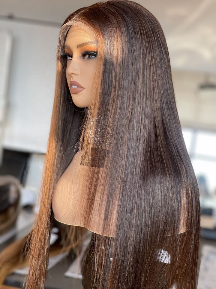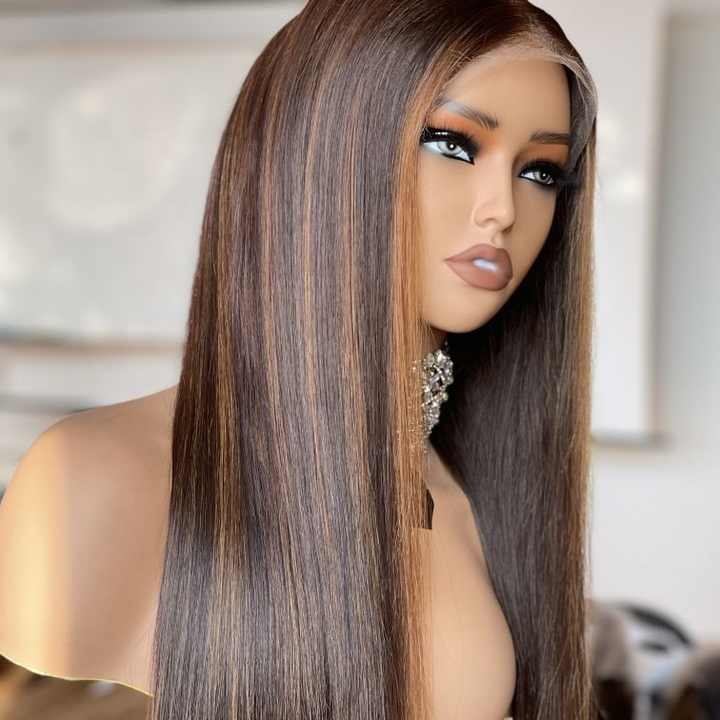วิกผมมนุษย์ไฮไลต์100% 20นิ้วสีตรงเรียบเนียนออกแบบได้เองดีไซน์หรู