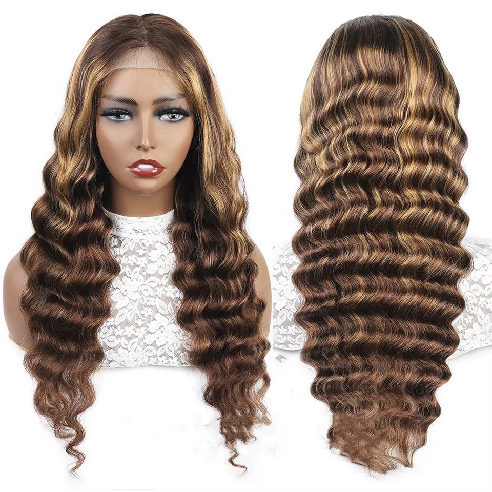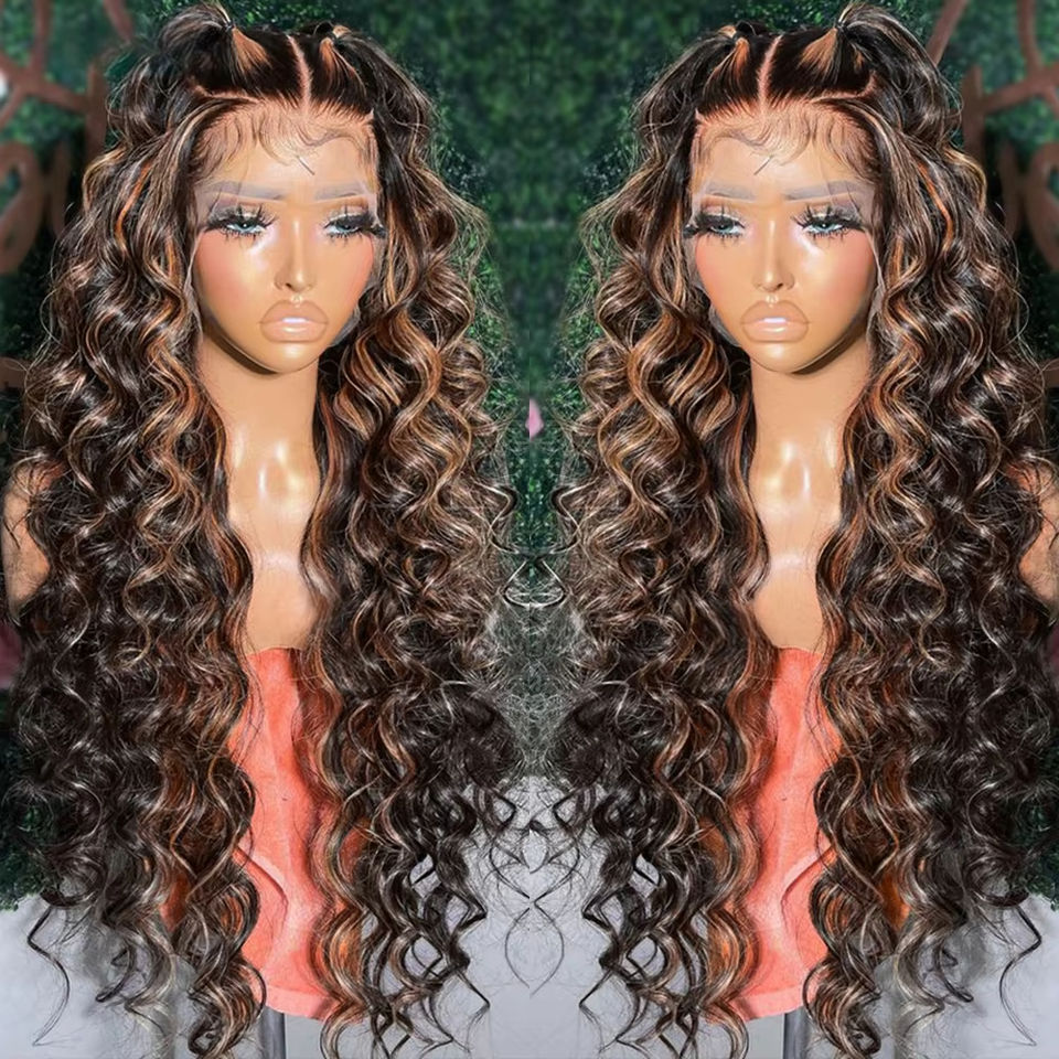 วิกผมสีบลอนด์ออมเบรทรงหลวม HD แบบมีลูกไม้ด้านหน้าผมจริงสำหรับผู้หญิงผิวดำ