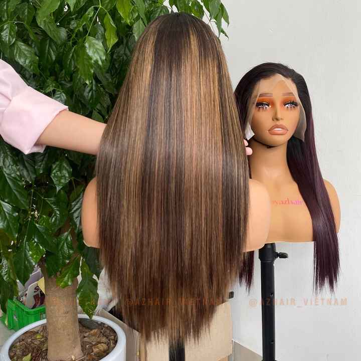 วิกผมแท้สำหรับผู้หญิงผมต่อทรงกระดูกตรงจากเวียดนามสีน้ำตาล