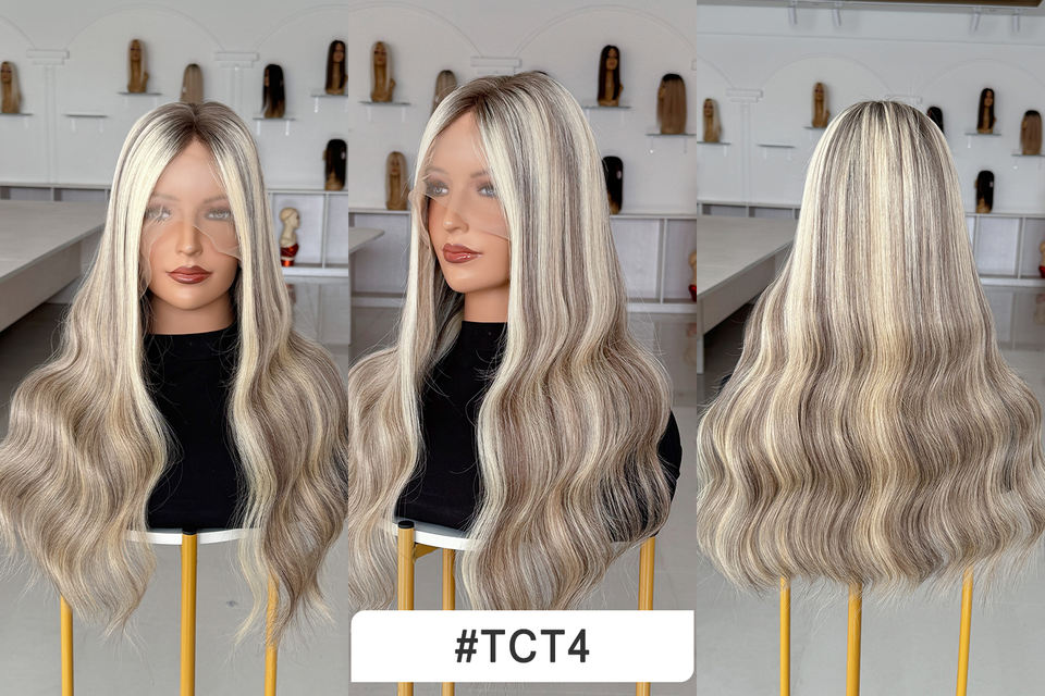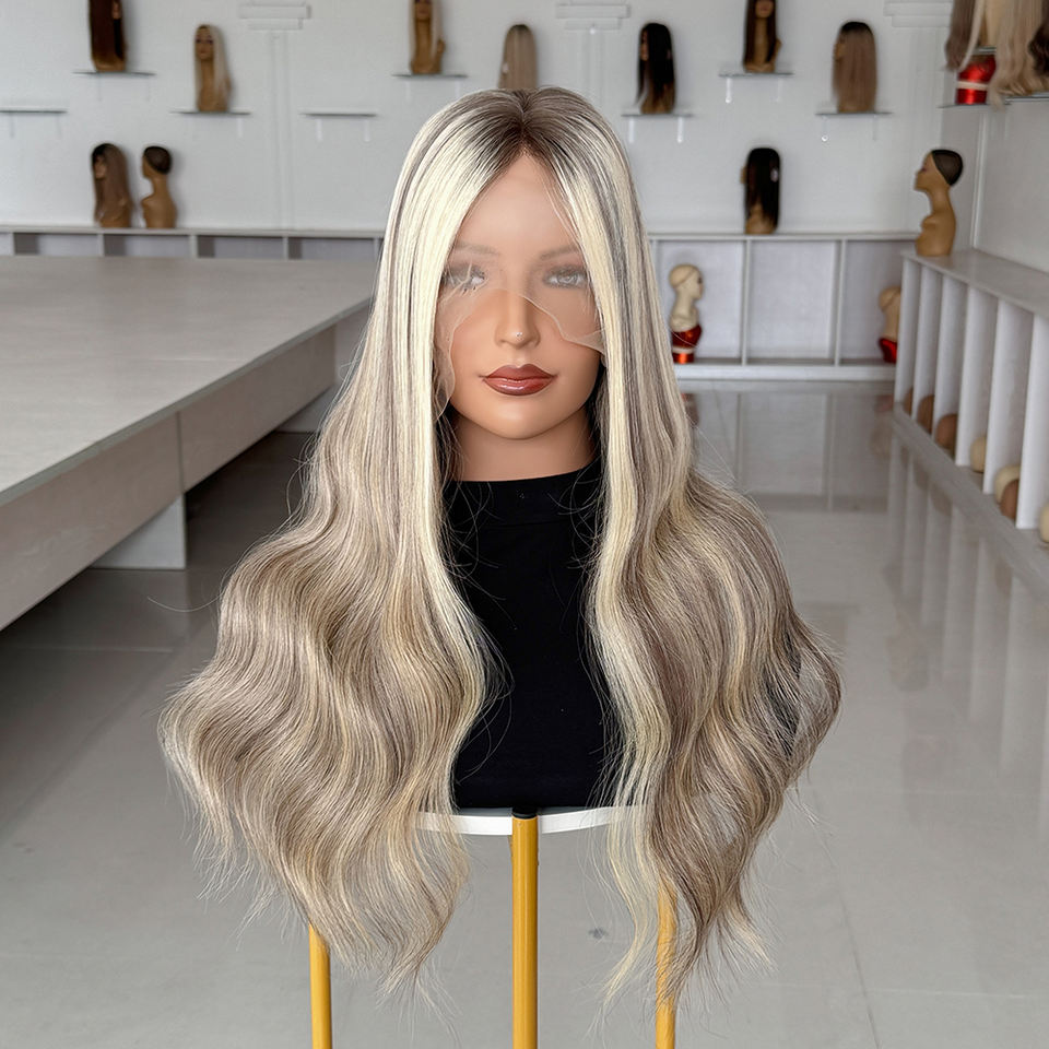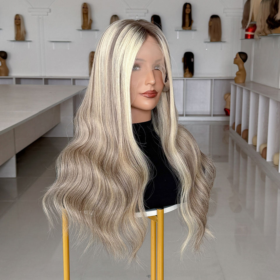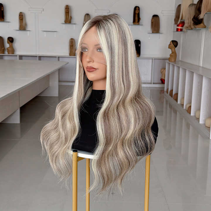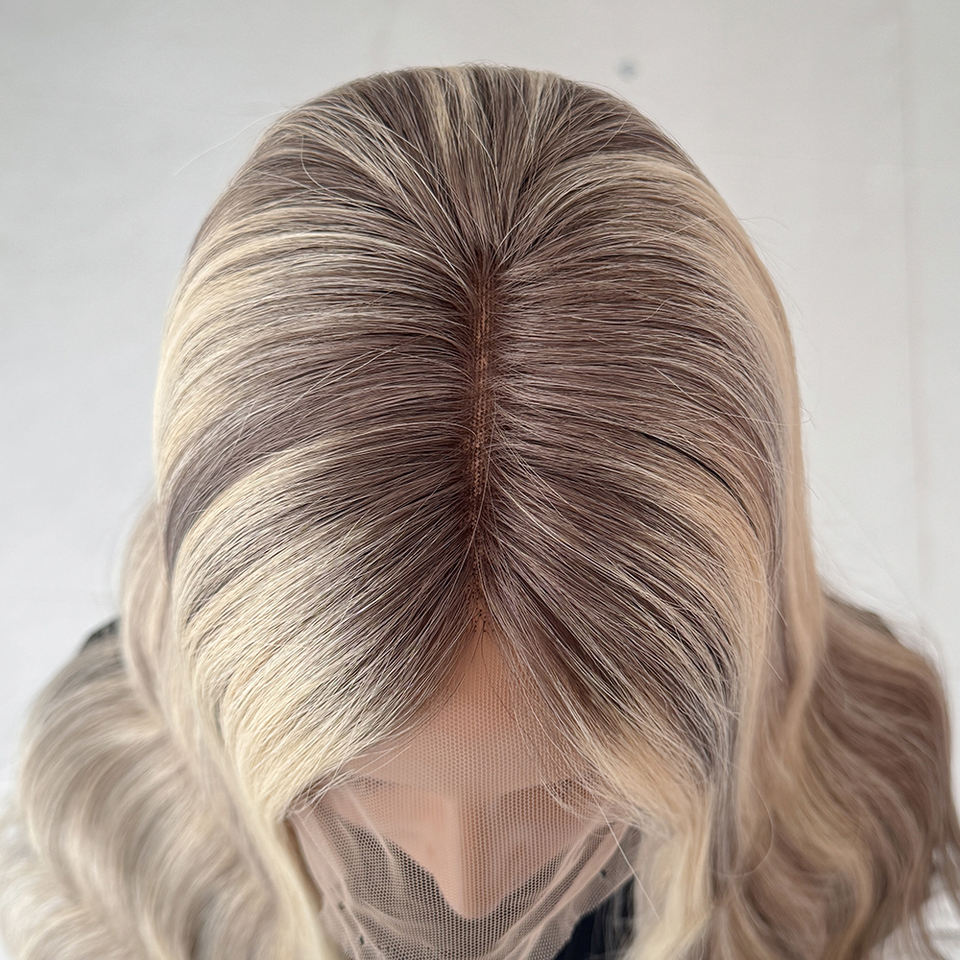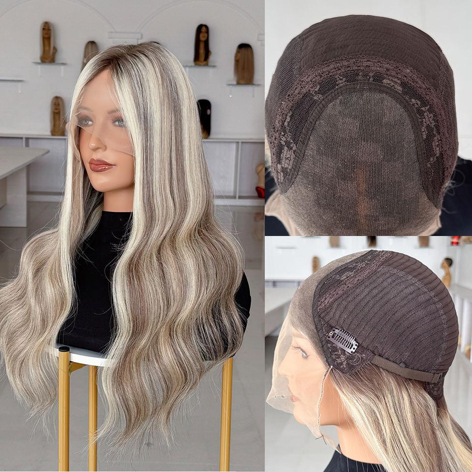วิกผมสีไฮไลท์แบบลอนสไตล์รัสเซีย ผลิตจากผมแท้ งานแฮนด์เมด ฐานลูกไม้ วิกทางการแพทย์ เส้นผมดูเป็นธรรมชาติ สำหรับผู้ป่วยโรคผมร่วง