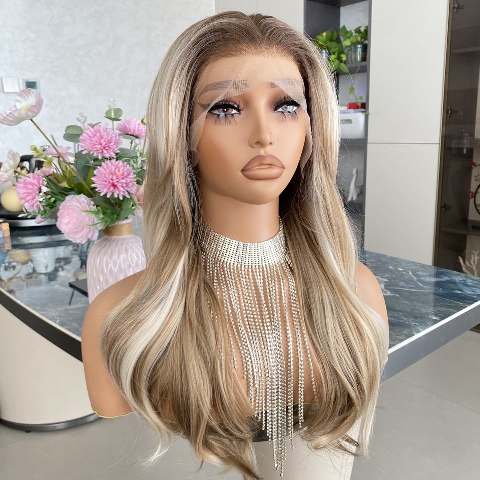 วิกผมหน้าผากใส 13x4 สีน้ำตาลผสมบลอนด์ แบบยาวเป็นลอนใหญ่ ทนความร้อน ไม่ต้องใช้กาว ขนาด 20 นิ้ว รุ่น Highlights Honey Blonde Long Super Wavy