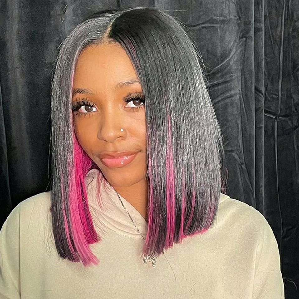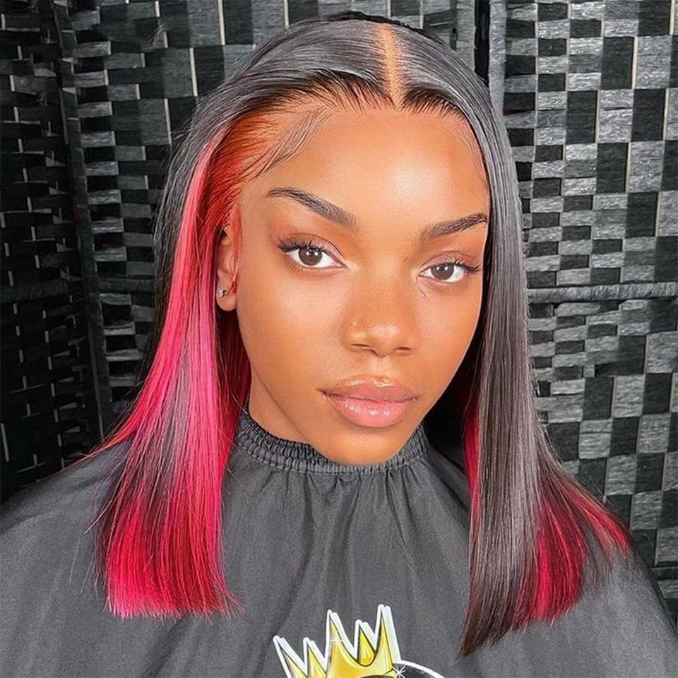 ไฮไลท์สีชมพูสีแดงสี13X6ลูกไม้หน้าผากมนุษย์วิกผมบ๊อบ5X5ลูกไม้ปิดวิกผมสั้นบ๊อบวิกสำหรับผู้หญิงผิวดำ2022แนวโน้ม