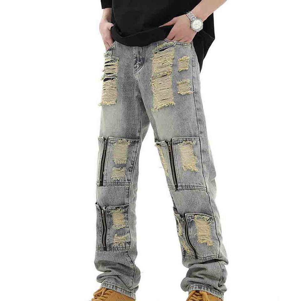 กางเกงยีนส์ผู้ชายไซส์ใหญ่ สไตล์ลำลอง เนื้อผ้านุ่มสบาย ทอแบบถัก แฟชั่นทันสมัย ได้รับความนิยมสูง