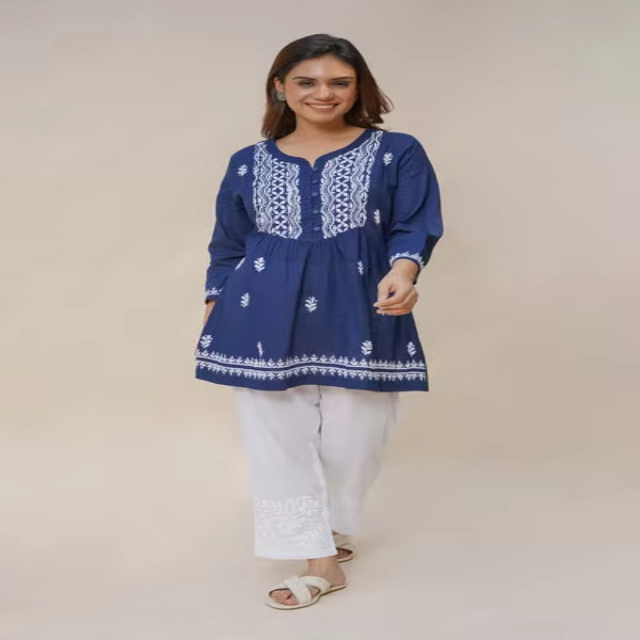Product Name:Women Casual Wear Pure Cotton Hand Embroidered Short Kurta