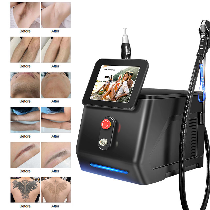 เครื่องกำจัดขนด้วยเลเซอร์ 2 in 1 คุณภาพสูง สามความยาวคลื่น 755nm+808nm+1064nm เหมาะสำหรับร้านเสริมสวยและคลินิก