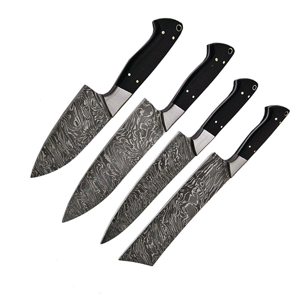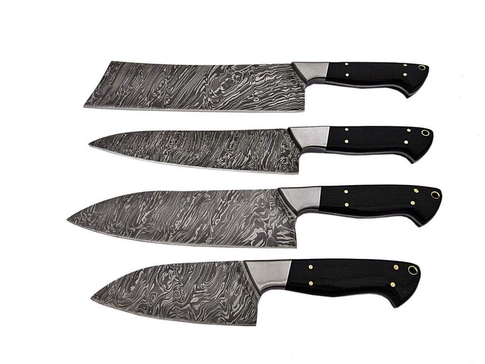 ชุดมีดเชฟเหล็กดามัสกัสทำด้วยมือจัดอันดับสูงใบมีดเหล็กกล้าคาร์บอนพร้อมปลอกหนังสำหรับผักสำหรับใช้ในครัว