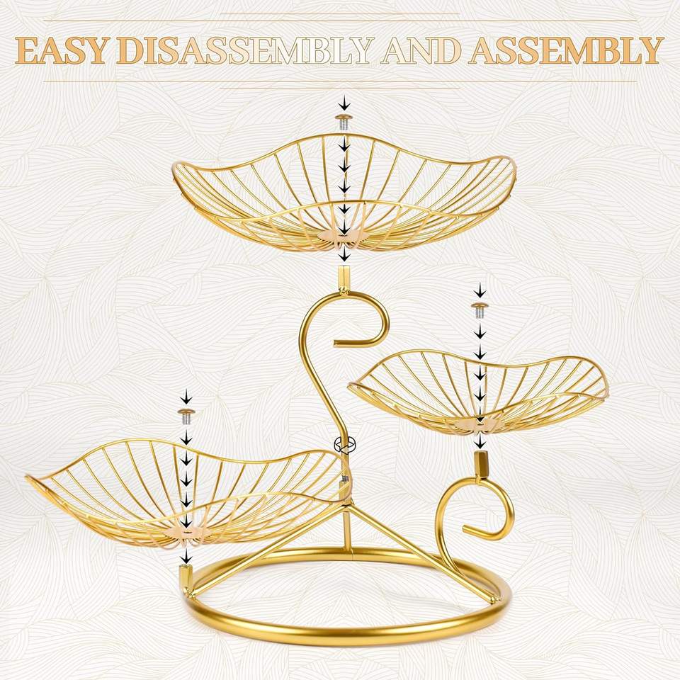 ตะกร้าผลไม้สีทอง3ชั้นแบบมีโครงสร้างที่โดดเด่นมากชามผลไม้โลหะทันสมัยสำหรับห้องครัวในบ้านตกแต่งโต๊ะของคุณ