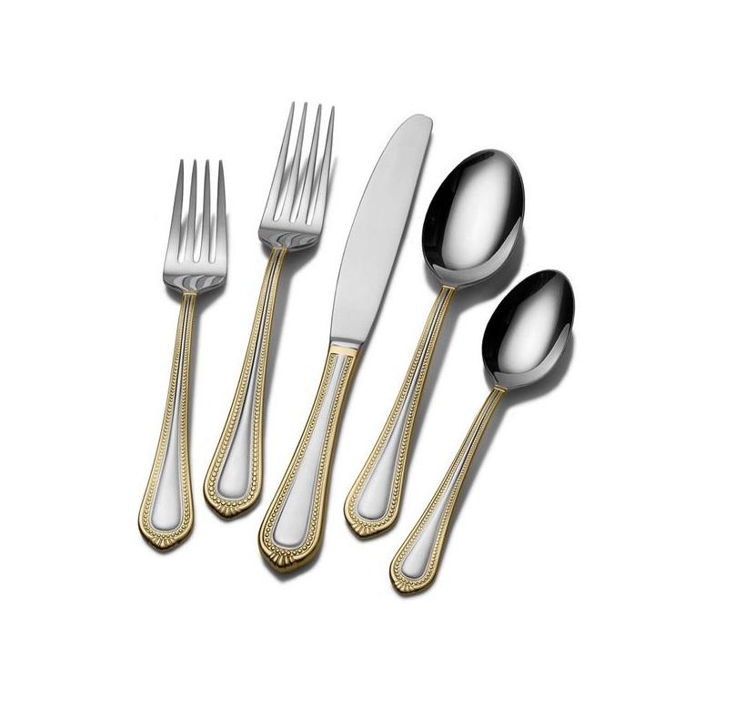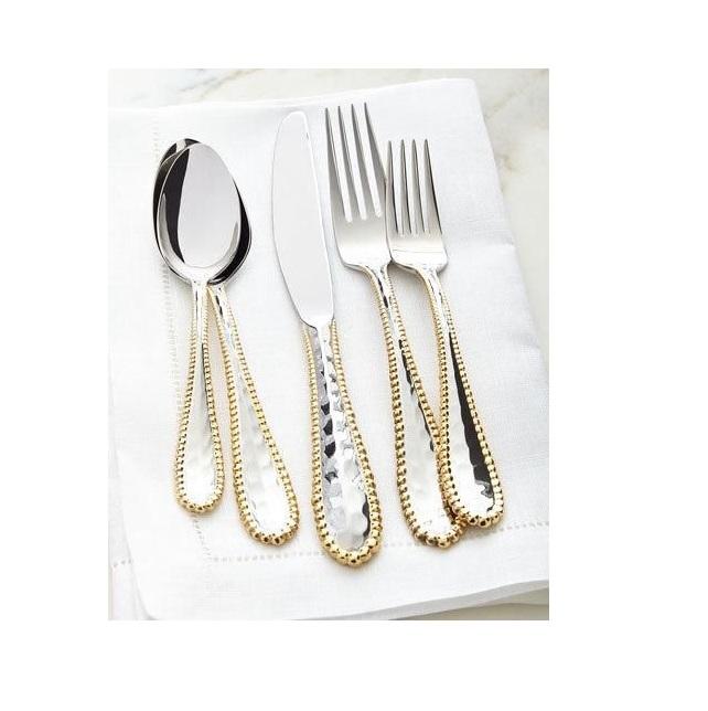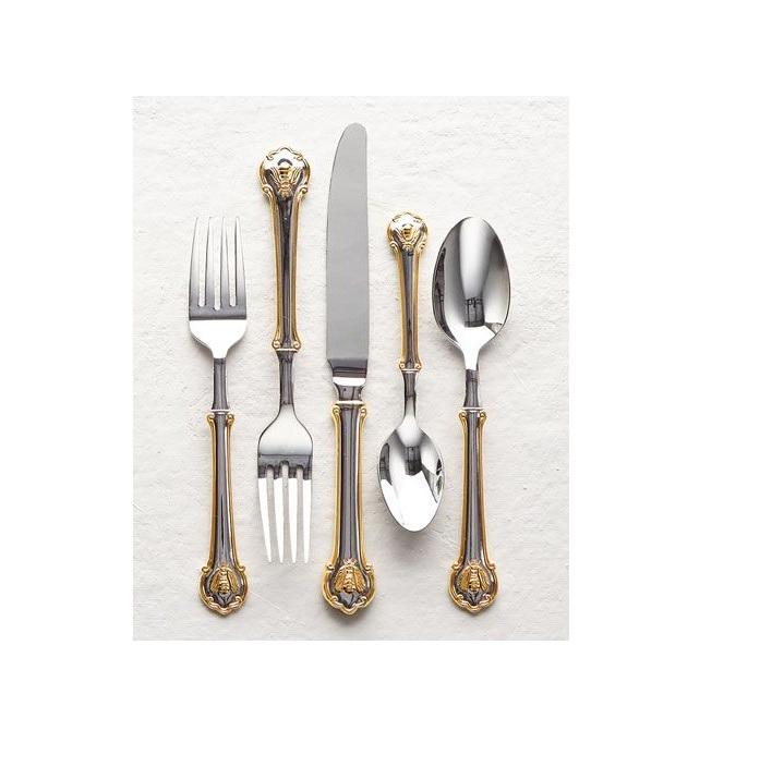 ชุดช้อนส้อมมีดสแตนเลส5ชิ้นชุดช้อนส้อมมีธีมสูงทาสีตกแต่งด้วยการออกแบบรูปทรงหลายขนาด