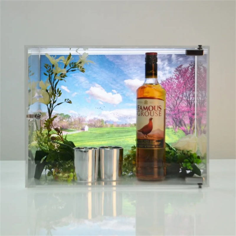 ตู้โชว์อะคริลิคติดผนังเรืองแสงโปร่งใสสูงสำหรับโชว์รูม