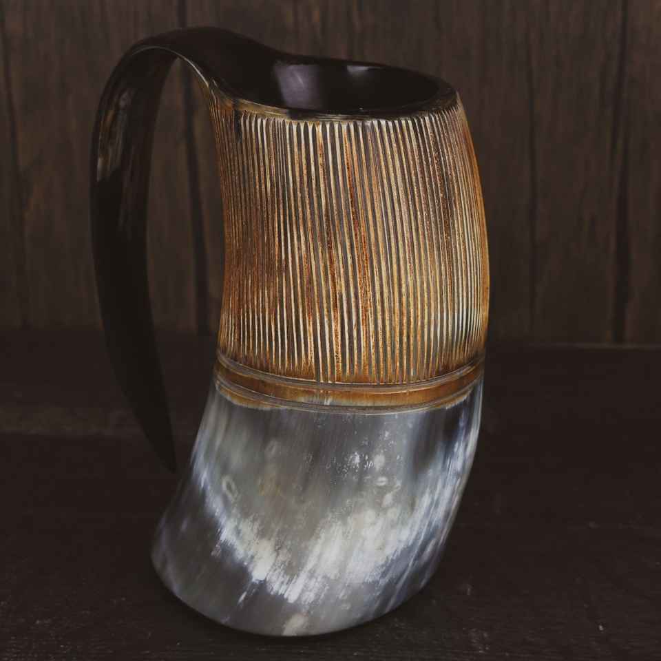 แก้วมักทรงแตรสำหรับดื่มไวน์และเบียร์ทำด้วยมือแกะสลักแบบไวกิ้ง