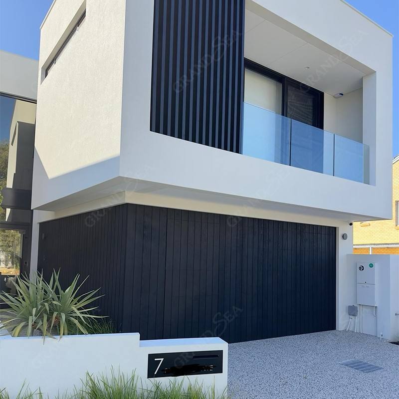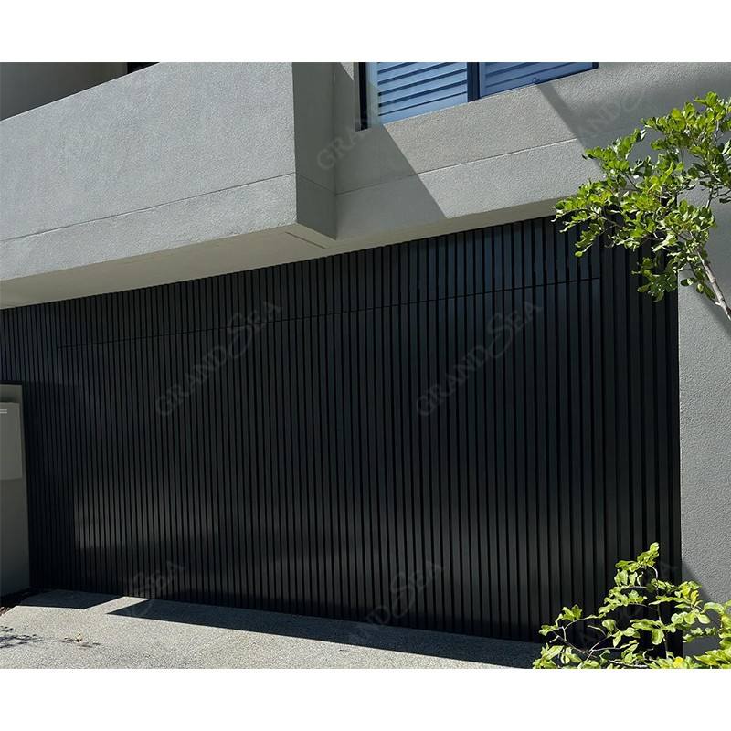 ประตูโรงรถแบบยุโรปหรูหรา ดีไซน์ไฮพอยน์ แบบแยกส่วน โครงอะลูมิเนียม แบบเรียบ ประตูโรงรถคู่ สำหรับบ้านพักตากอากาศ