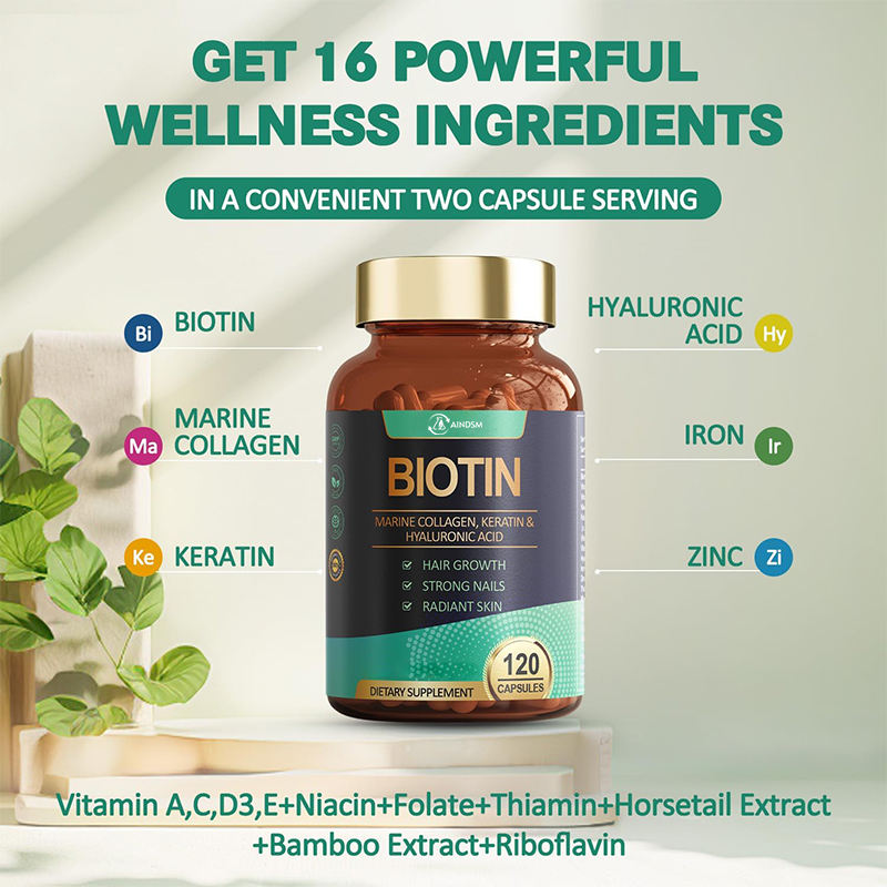 ไบโอตินเพิ่มความหนาแน่นของเส้นผมแคปซูลอาหารเสริมบำรุงผิวเล็บให้ผมเติบโตวิตามินไบโอตินไนอาซิน