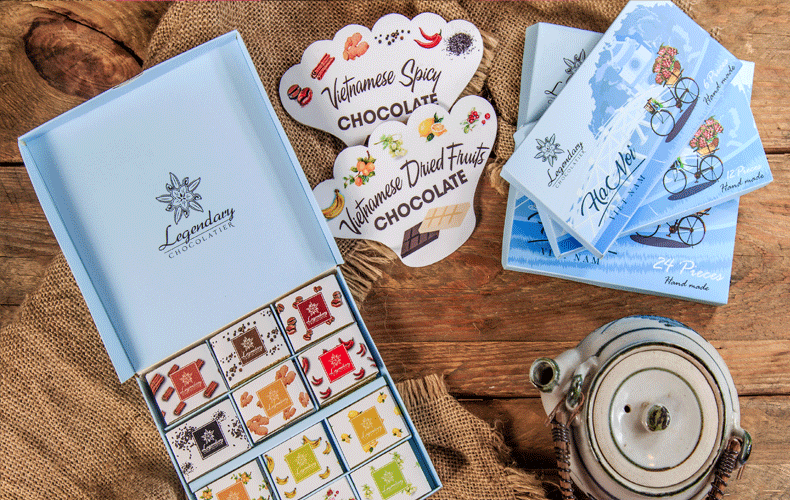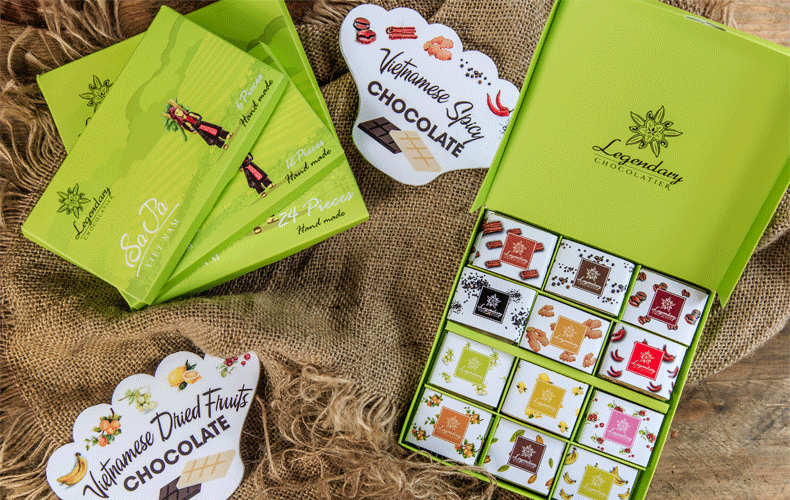 ช็อคโกแลตผสมผลไม้และเครื่องเทศ,ช็อคโกแลต6ชิ้นในกล่องของขวัญทำในเวียดนาม