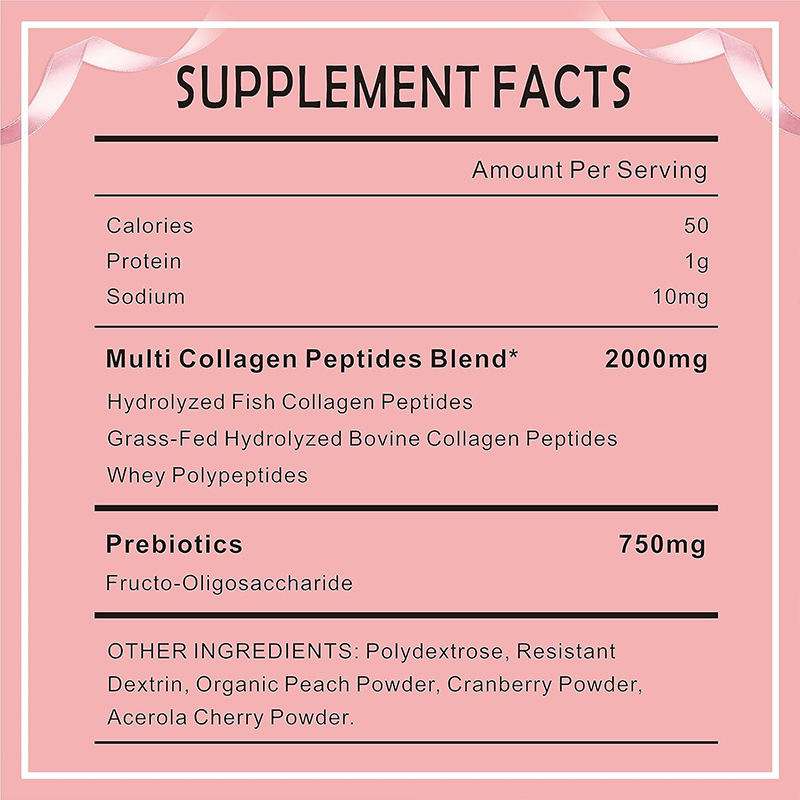 คอลลาเจนเปปไทด์คุณภาพสูง ผงสำหรับบำรุงผม ผิว เล็บ และข้อต่อ ปราศจากน้ำตาล พร้อมพรีไบโอติก โปรตีน คอลลาเจนเพื่อความงาม