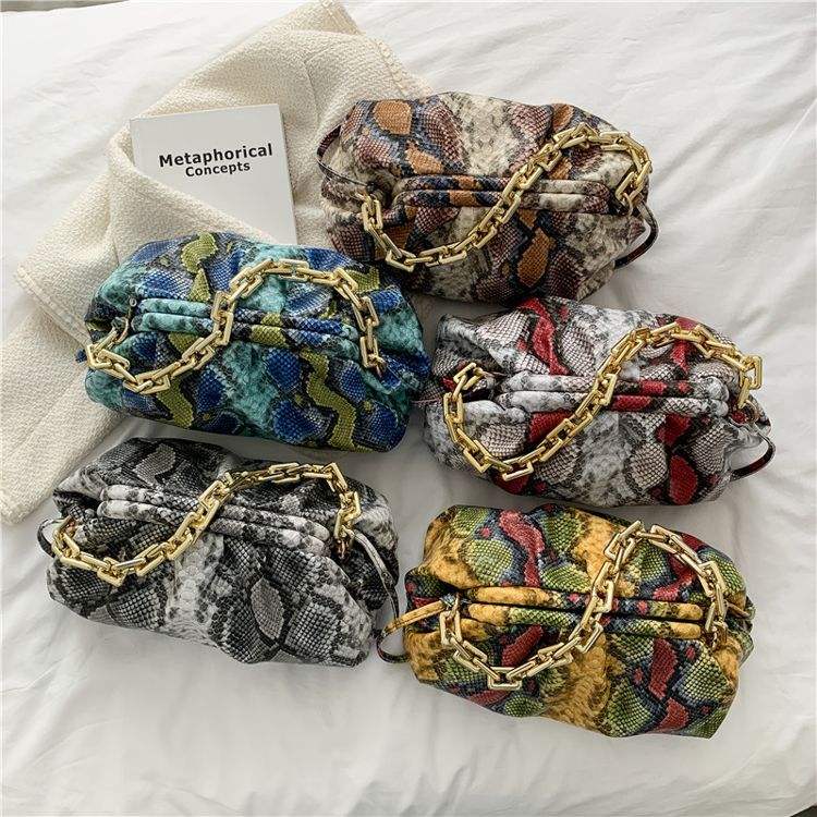 กระเป๋าถือสตรีหนัง Pu นิ่ม,กระเป๋าถือลายงูแฟชั่นคุณภาพสูงประหยัดเงิน