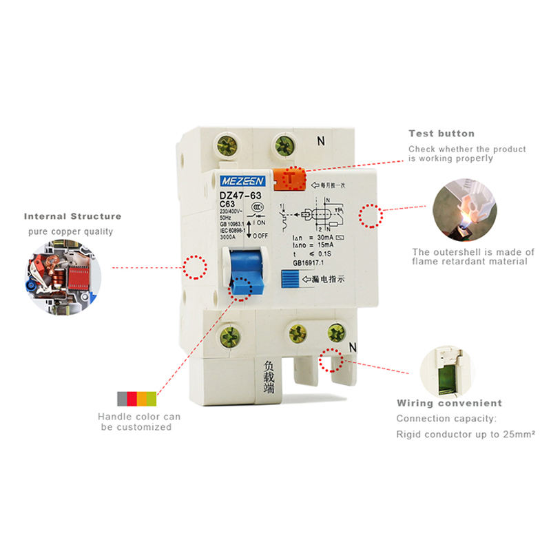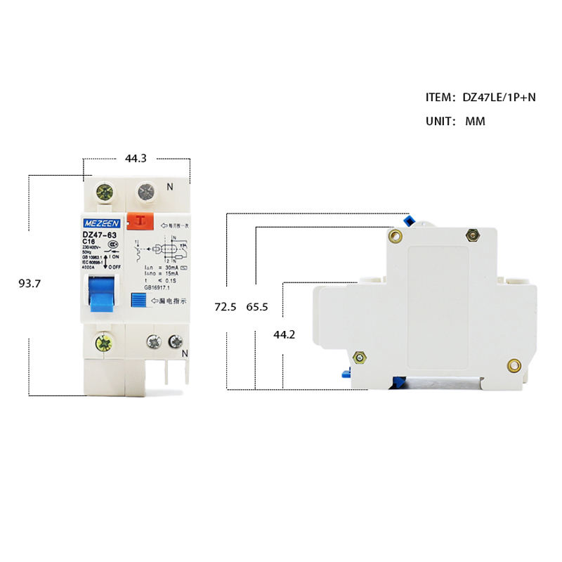 RCBO เซอร์กิตเบรกเกอร์1P + N,เบรกเกอร์ที่ใช้กระแสไฟตกค้าง10 16 20 25 32 40 50 63A