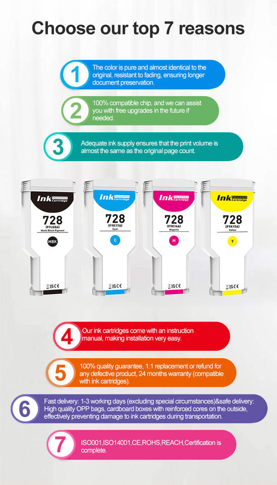 หมายเลขตลับหมึก:สำหรับ HP 728