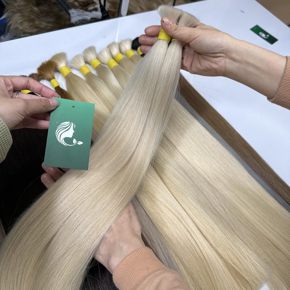 ผมมนุษย์แท้นุ่มเนียนนุ่มสำหรับต่อผมผมตรง100กรัมสีบลอนด์แบบชาวรัสเซียเรมี่จำนวนมาก