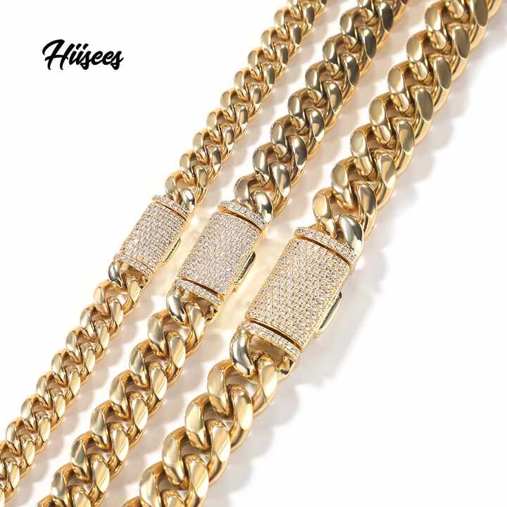สร้อยคอคิวบาลิงค์สแตนเลสชุบทอง 18k ขนาด 8 มม. 10 มม. 12 มม. สำหรับผู้ชาย สไตล์ฮิปฮอป เหมาะสำหรับงานปาร์ตี้