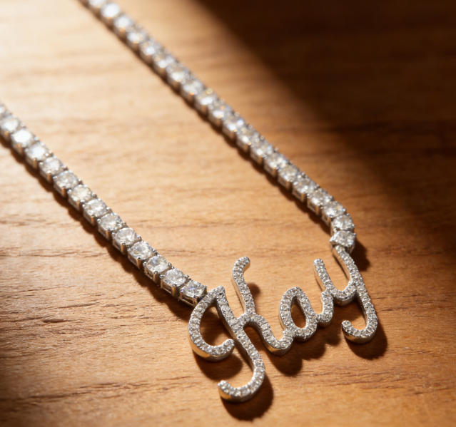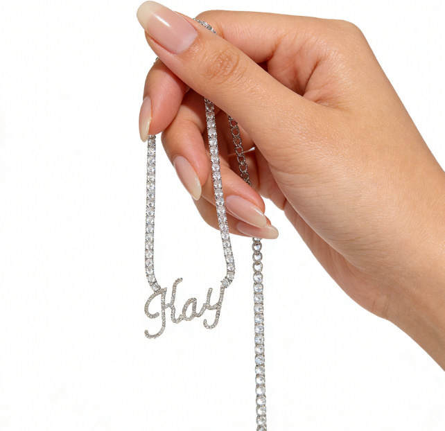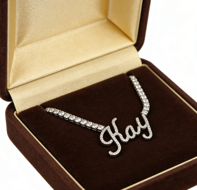 จี้ห้อยคอแบบปรับแต่งชื่อได้ Hiisees ชุบทอง 18K พร้อมสร้อยคอเทนนิสประดับเพชร CZ สำหรับผู้หญิงผู้ชาย ทำจากทองเหลืองและเพชรซิร์คอน เหมาะสำหรับเป็นของขวัญ
