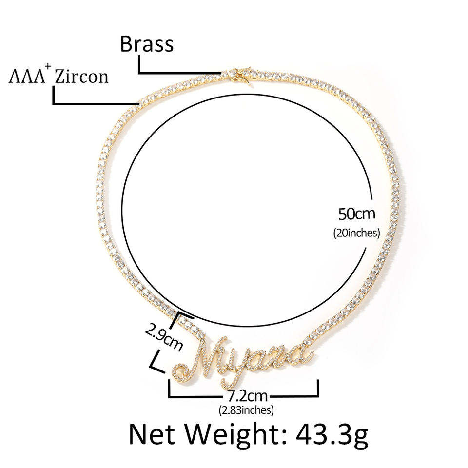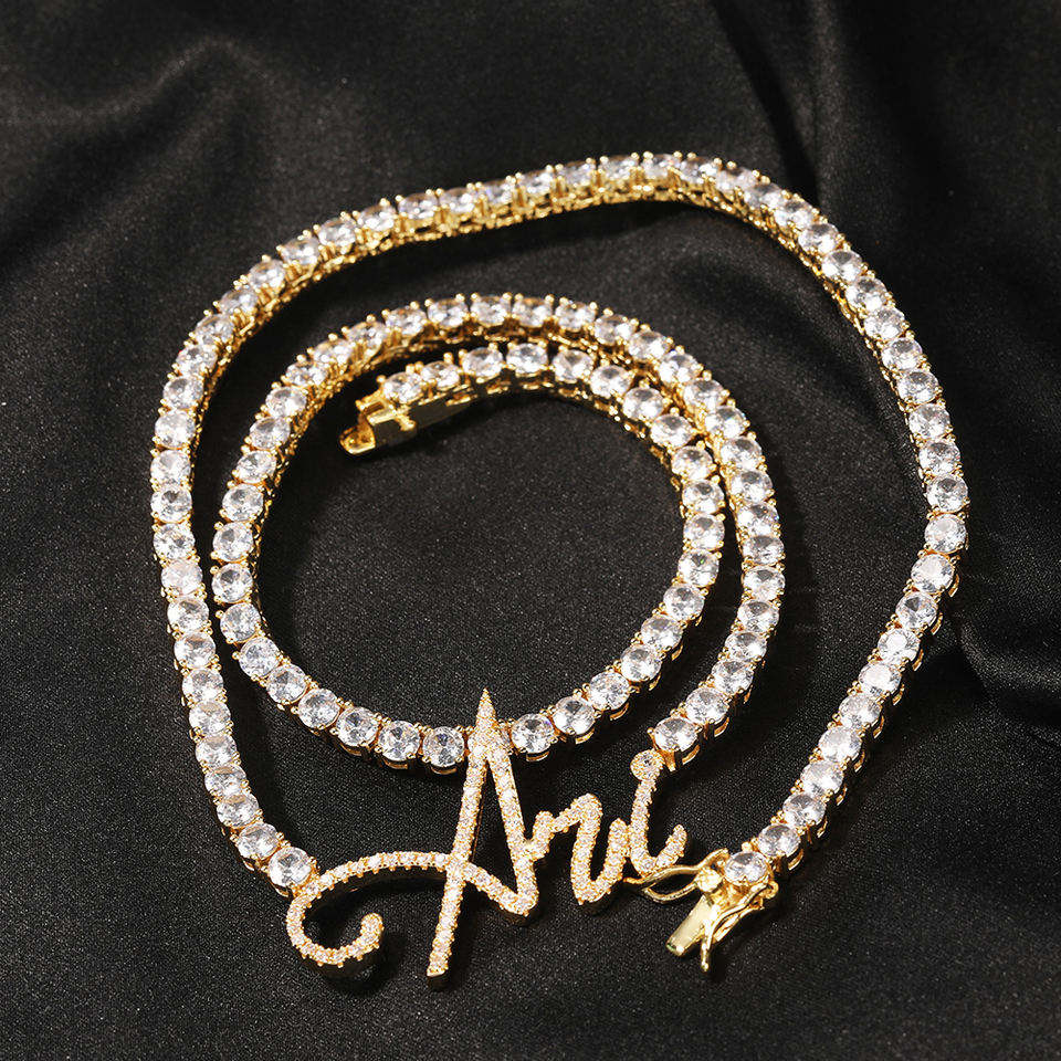 Hiisees สร้อยคอตัวอักษรเย็นชุบทอง18K,สร้อยคอตัวเชื่อมต่อสายเทนนิส CZ ป้ายชื่อแบบกำหนดได้เองสำหรับผู้หญิงและผู้ชาย
