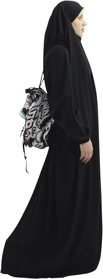 ฮิญาบสีดำ อาบายะห์สำหรับละหมาด ฮัจญ์ อุมเราะห์ สไตล์อิสลาม วินเทจ สีดำ คาฟตัน อาบายะห์ ฮิญาบแบบเรียบ อาบายะห์สำหรับเด็กผู้หญิง ระบายอากาศได้ดี