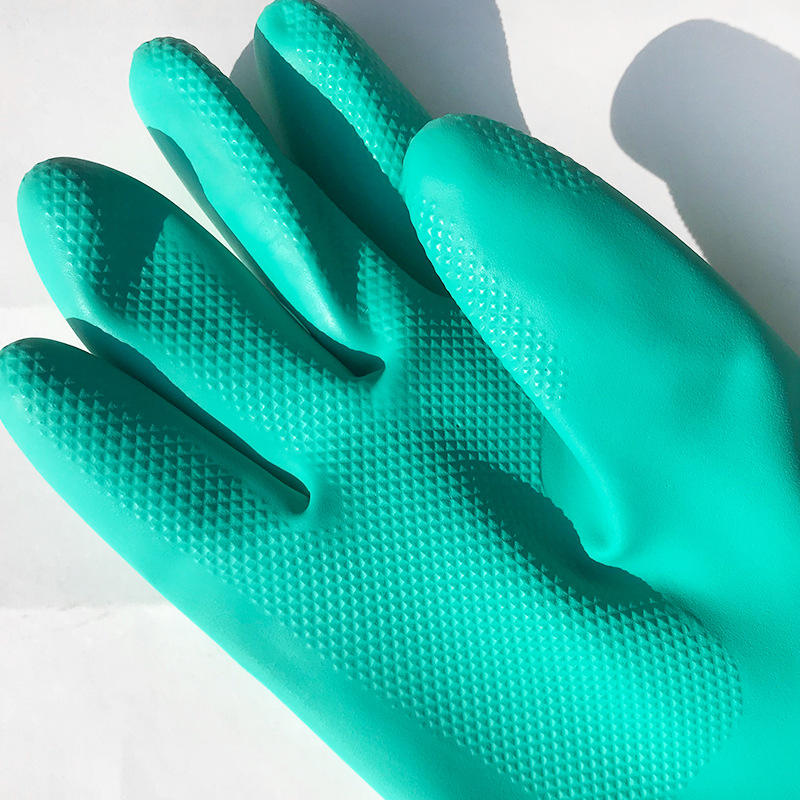 ถุงมือป้องกันสารเคมี Hikari Nitrile ขนาด 46 ซม. แบบเต็มพื้นผิว ลายไมโครไดมอนด์ สำหรับงานอุตสาหกรรมและก่อสร้าง มาตรฐาน EN ISO 374 ประเภท A