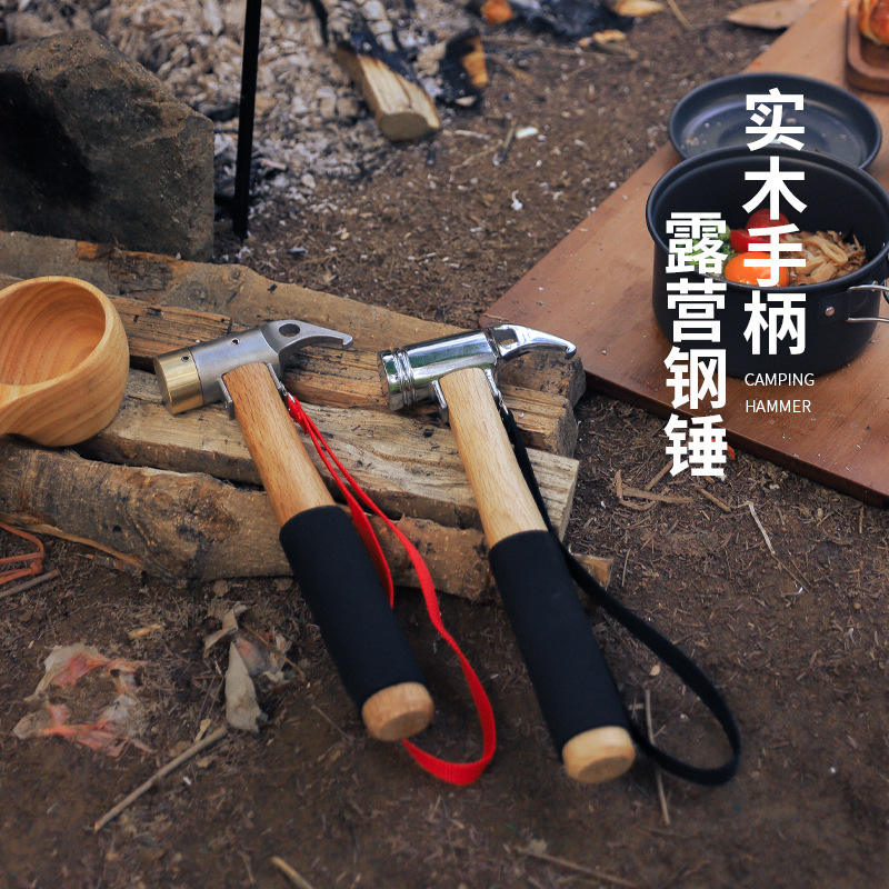 ค้อนตั้งแคมป์แบบพกพา ด้ามไม้ อเนกประสงค์ สำหรับตอกสมอบกและดึงตะปูผ้าใบ