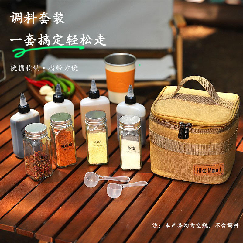 ชุดขวดเครื่องปรุงสำหรับเดินป่าและกิจกรรมกลางแจ้ง พร้อมกระเป๋าเก็บของ พกพาสะดวกสำหรับการตั้งแคมป์ ปิ้งย่าง และทำอาหาร