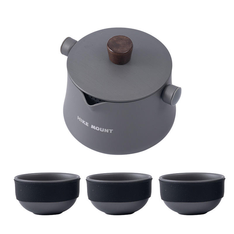 ชุดชงชาพกพา Hike Mount อลูมิเนียมอัลลอยด์ 4 ชิ้น ชุดทำชาสำหรับตั้งแคมป์ น้ำหนักเบา ชุดเดินทางพร้อมกาน้ำหนึ่งใบ ถ้วยสามใบ