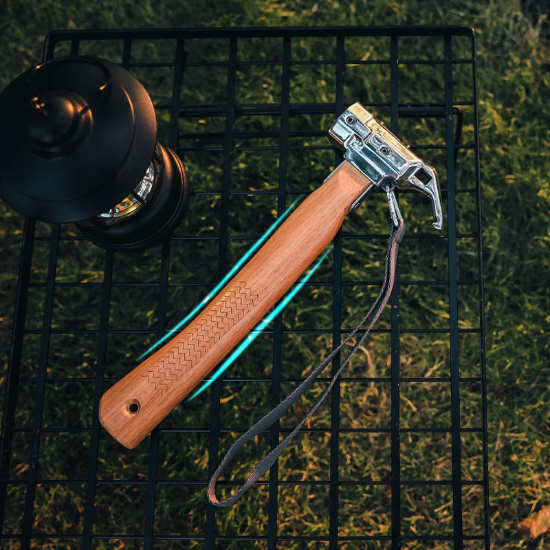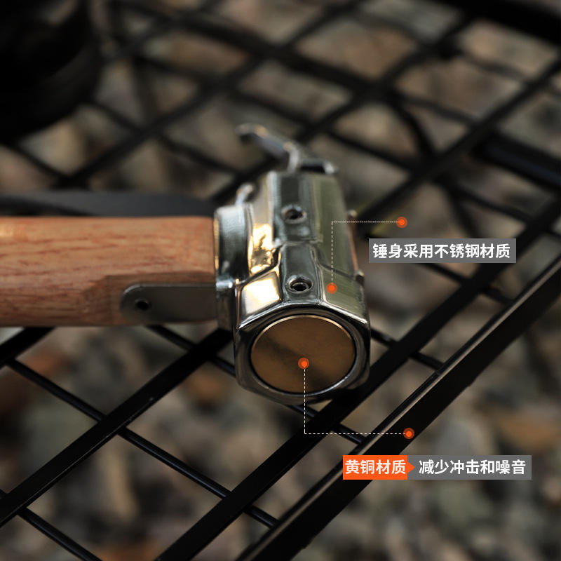 ค้อนตอกสมอบกสำหรับตั้งแคมป์ ทำจากสแตนเลส ด้ามไม้ทองแดง อุปกรณ์อเนกประสงค์สำหรับกิจกรรมกลางแจ้ง