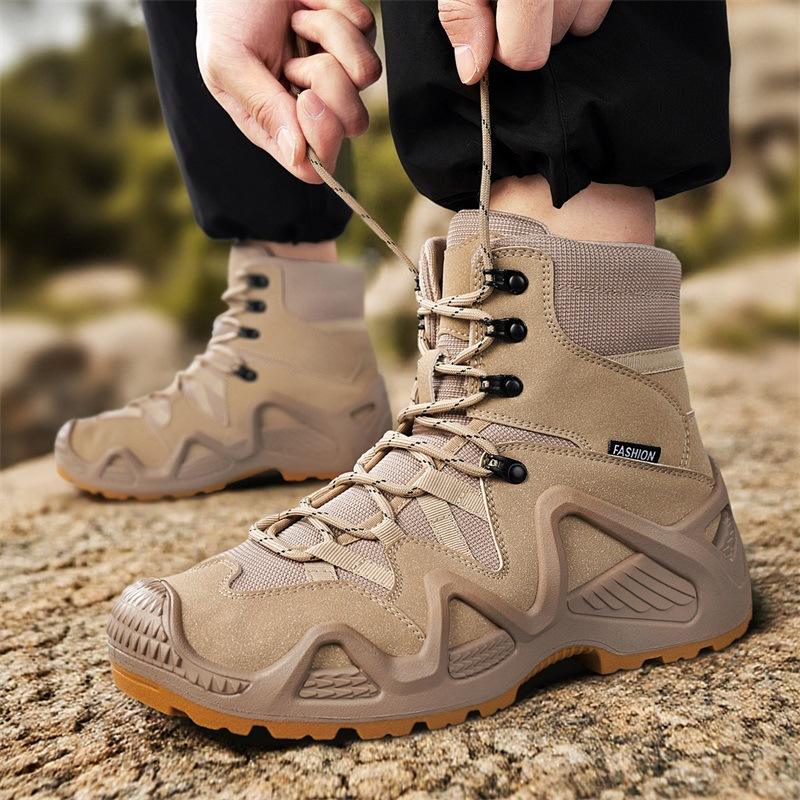 รองเท้าเดินป่าสำหรับใช้งานกลางแจ้ง รองเท้าผู้ชายแบบหุ้มข้อกลางน่อง กันน้ำและกันลื่นสำหรับผู้ชาย