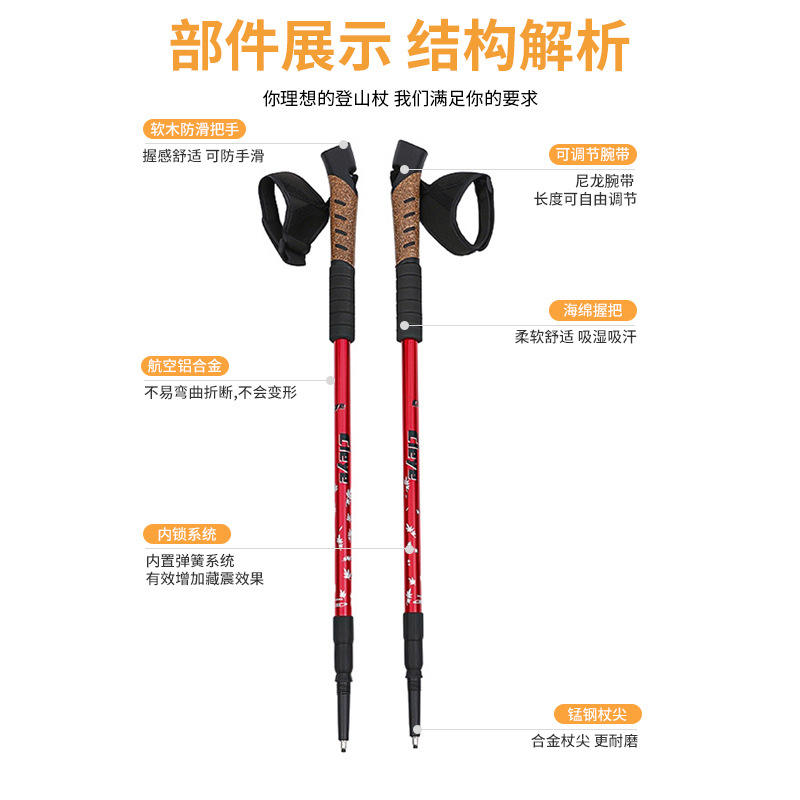 ไม้เท้าเดินป่า อลูมิเนียมอัลลอยด์ 3 ท่อน น้ำหนักเบา ปรับระดับได้ สำหรับเดินป่าและเดินเล่นกลางแจ้ง