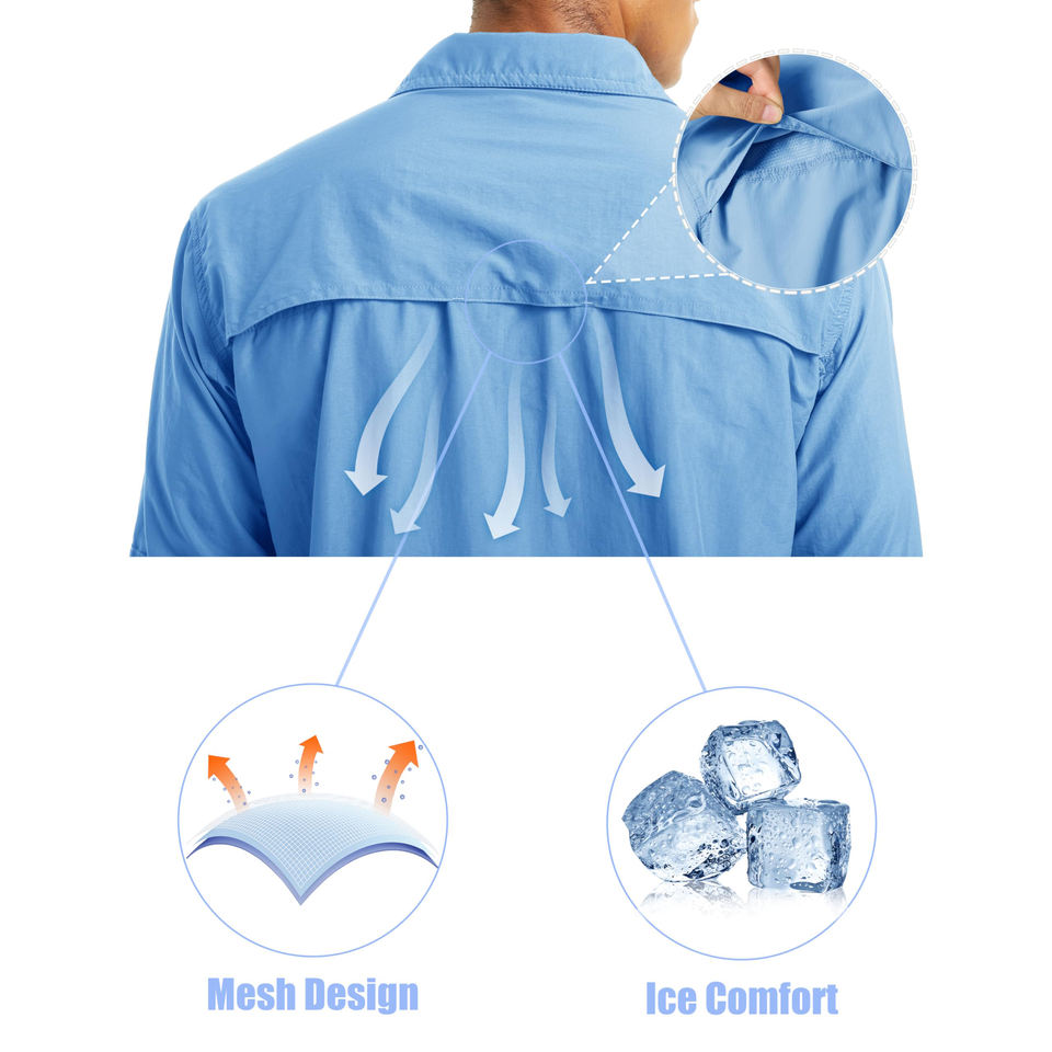 เสื้อเดินป่าสำหรับผู้ชาย คุณภาพสูง ปักโลโก้ตามสั่ง น้ำหนักเบา ประสิทธิภาพสูง เสื้อผู้ชายสำหรับเดินป่า ตกปลา ล่าสัตว์