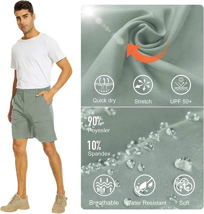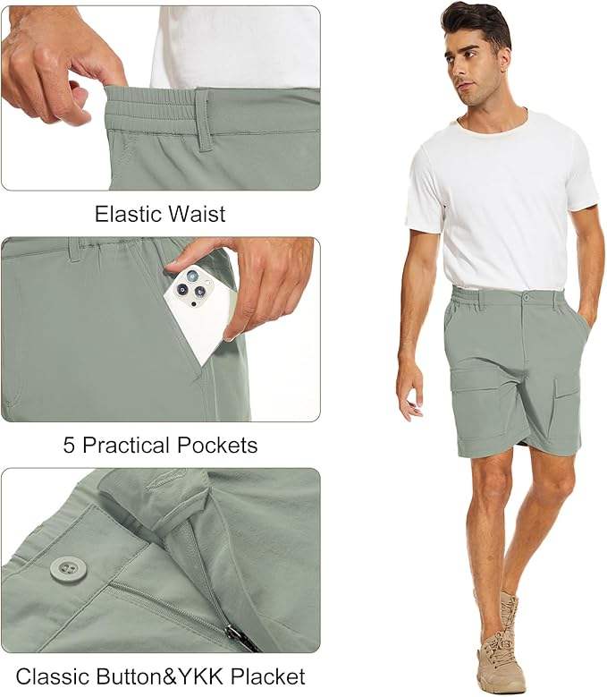 กางเกงขาสั้นเดินป่าสำหรับผู้ชาย กางเกงขาสั้นตกปลาแบบยืดน้ำหนักเบา กางเกงขาสั้นทำงานแบบแห้งเร็ว กางเกงขาสั้นลำลองสำหรับผู้ชายฤดูร้อน