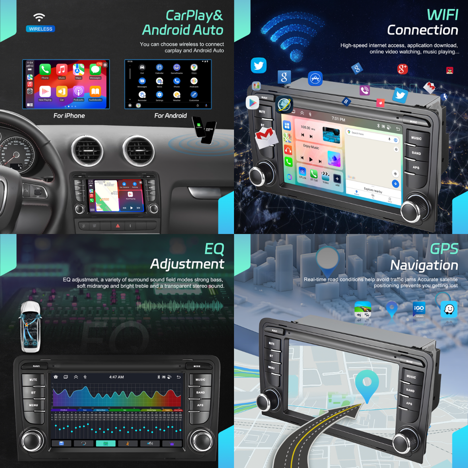 ชื่อสินค้า:วิทยุคาร์เพลย์ Android สำหรับ Audi A3/S3/RS3 2003-2012