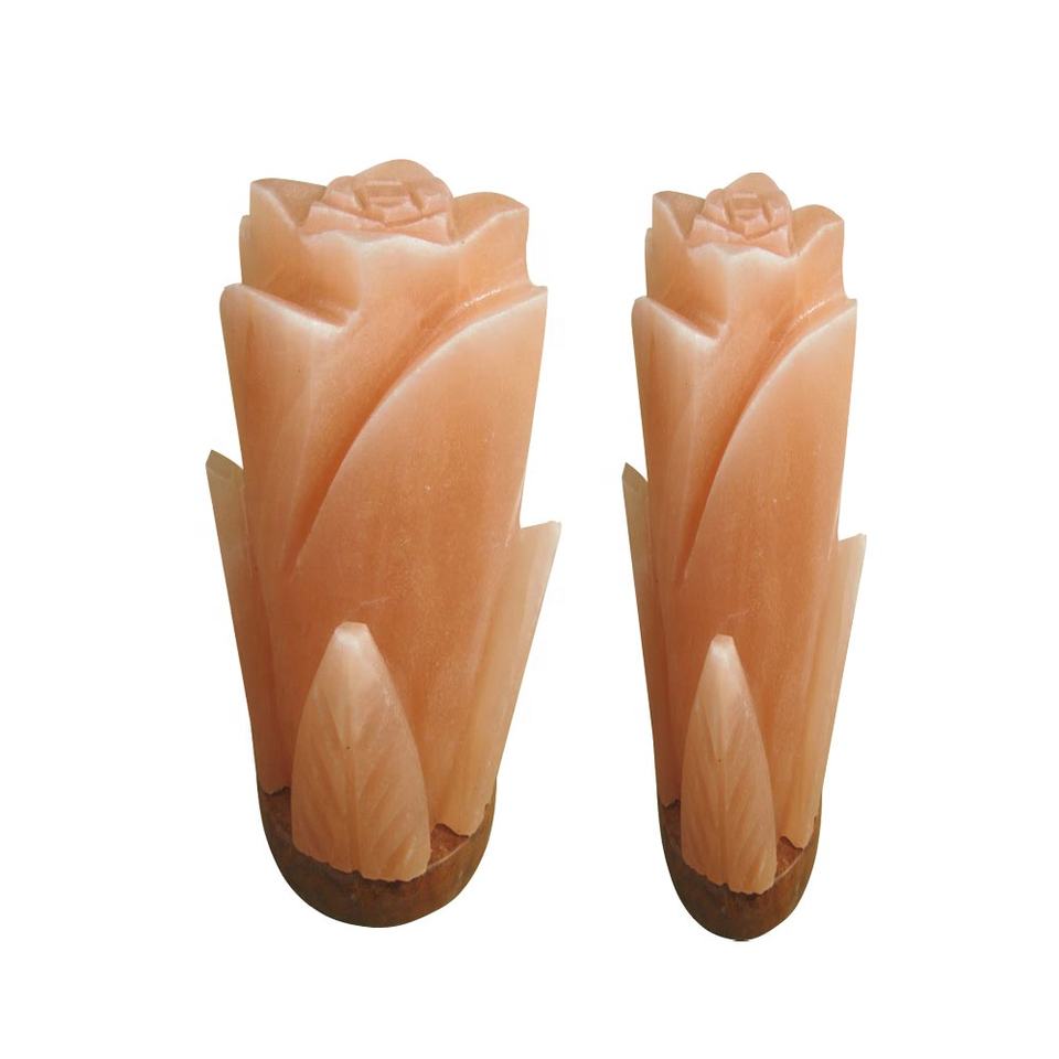 โคมไฟเกลือทรงดอกกุหลาบสีชมพูอ่อนทำด้วยมือเป็นมิตรกับสิ่งแวดล้อมตกแต่งบ้านสไตล์ดอกไม้