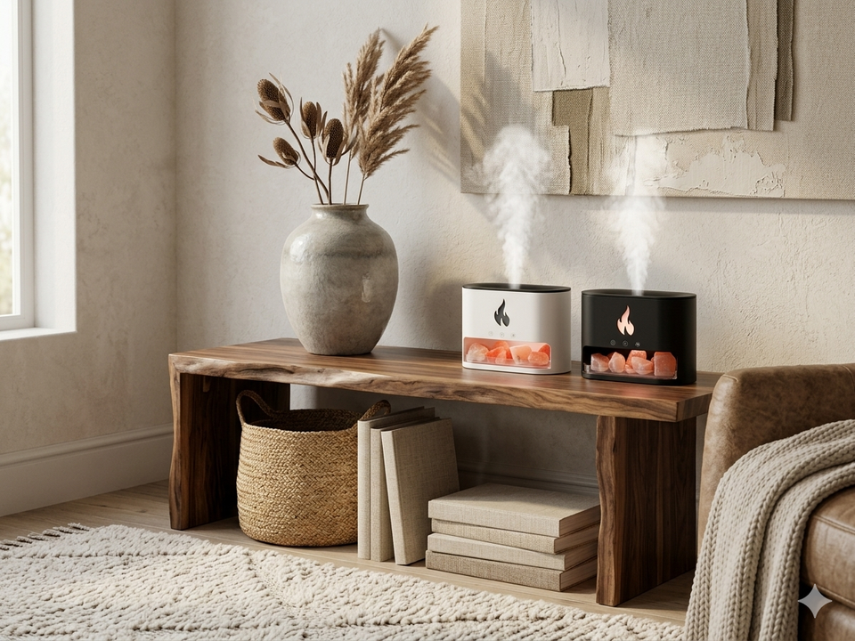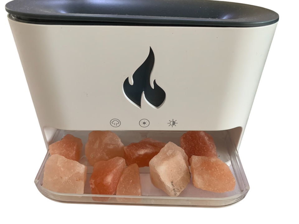 โคมไฟเกลือหิมาลัยพร้อมเครื่องกระจายกลิ่นน้ำมันหอมระเหย สร้างเอฟเฟกต์เปลวไฟ พร้อมฟังก์ชั่นเพิ่มความชื้นและแสงสร้างบรรยากาศ