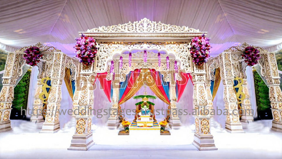 งานครบรอบแต่งงานเสาคู่ของชาวฮินดูของตกแต่งเสาคู่สำหรับงานแต่ง