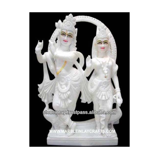 รูปปั้นหินอ่อนสีขาวที่มีคุณภาพดีที่สุดพร้อมมือพรฮินดูพระเจ้าและเทพธิดายืน Radha กฤษณะ