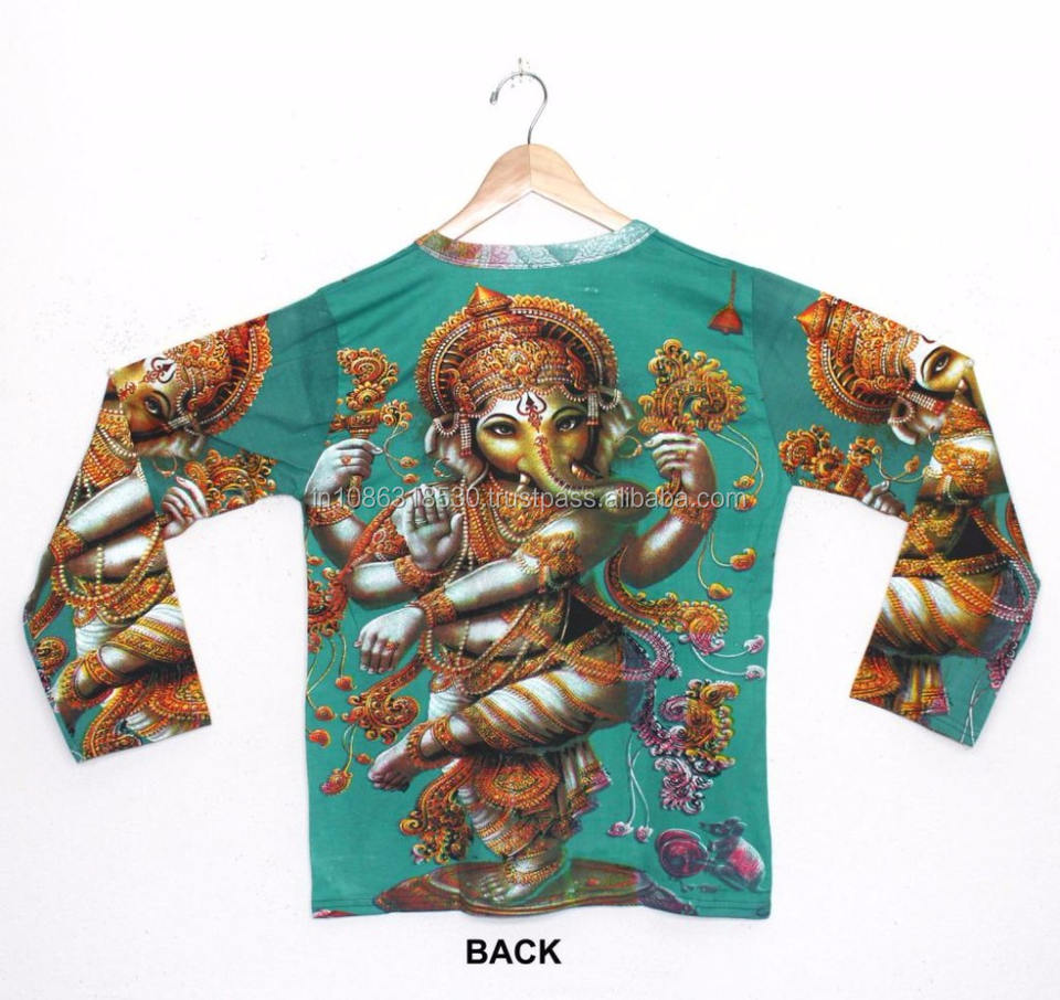 เสื้อยืดลายเทพฮินดูและพระพิฆเนศ เทพเจ้าแห่งศาสนาฮินดูอินเดีย ลายพิสดิลิก ยูนิเซ็กซ์ สไตล์ฮิปปี้ ดีเจ ศิลปะ ไซส์ M / L / XL