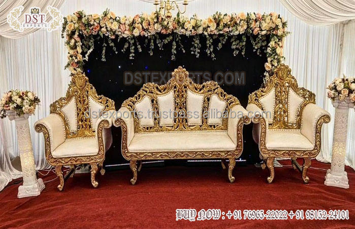 Hindu Wedding Day Revealing Stage Decor Sofa Set French Style Sofa Set for Couples Magnificent Wedding Hand Carved Sofa Set USA