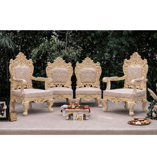 ชุดเฟอร์นิเจอร์สำหรับพิธีแต่งงานฮินดูแบบเฟรา วินเทจ รัสติก ทำจากไม้ที่ผ่านการปรับสภาพ พร้อมเก้าอี้สำหรับงานเลี้ยงต้อนรับแบบอินเดีย ขายส่งจากโรงงาน