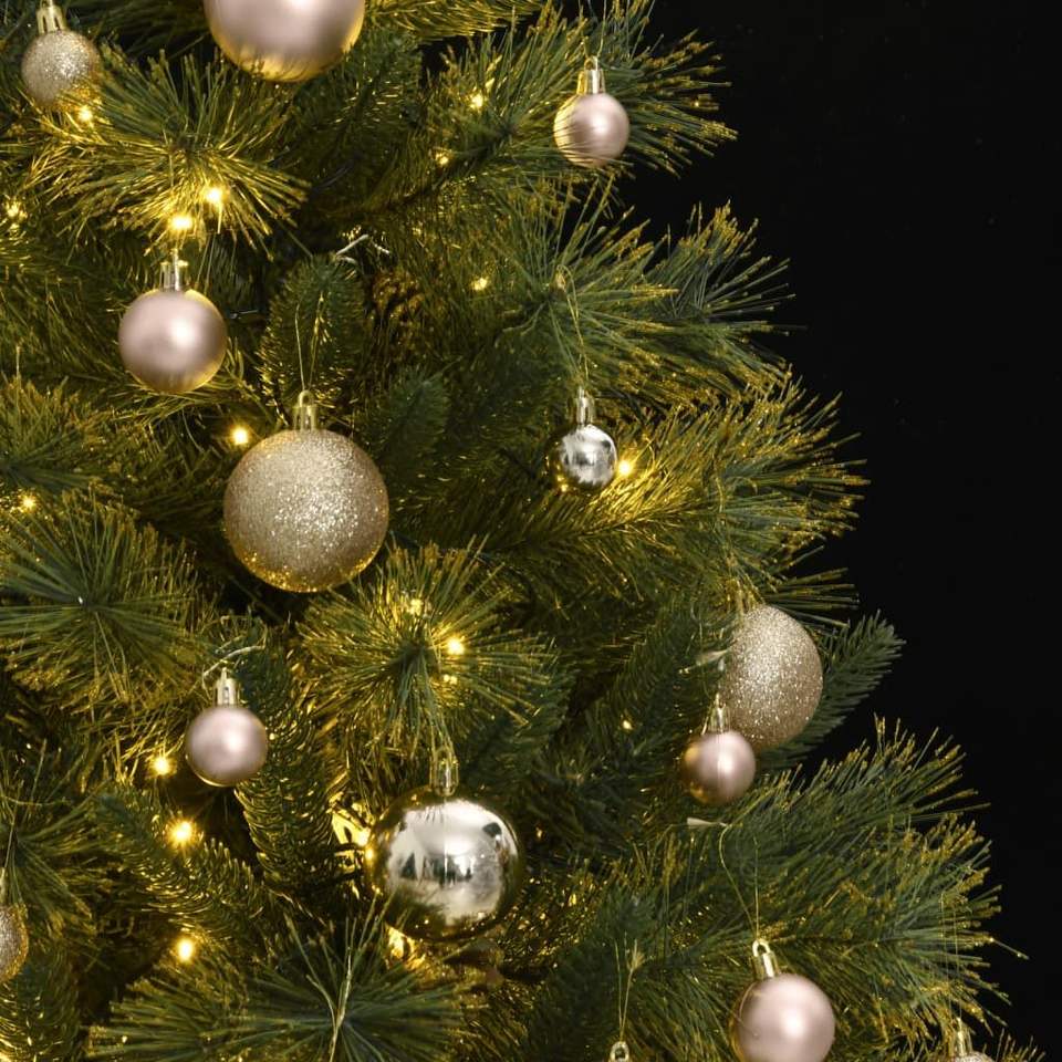 ต้นคริสต์มาสประดิษฐ์แบบมีบานพับ สีโรสโกลด์ ขนาด 59.1 นิ้ว พร้อมไฟ LED 150 ดวง และชุดลูกบอลตกแต่ง