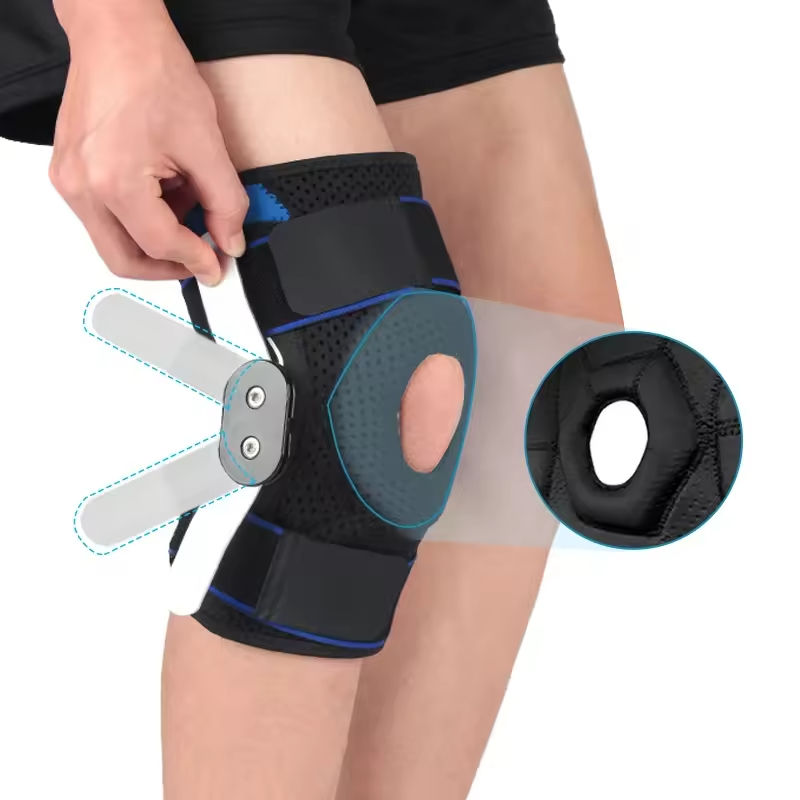 ที่รัดเข่าแบบบานพับสำหรับผู้ชายและผู้หญิงรองรับข้อเข่าสำหรับเอ็นเอ็นเอ็นกล้ามเนื้อบวมและการบาดเจ็บที่ข้อต่อ