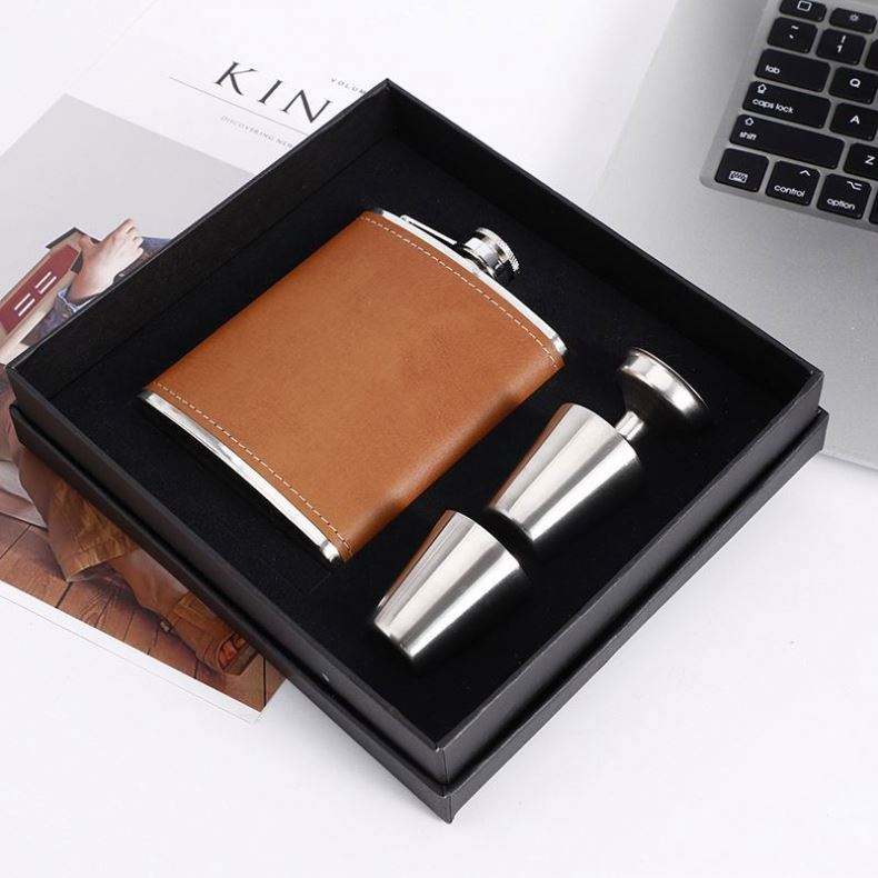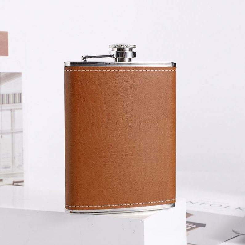 กระติกน้ำสแตนเลสหุ้มหนัง ความจุ 6 ออนซ์-8 ออนซ์ สไตล์อเมริกัน ขวดพกพา ชุดอุปกรณ์เดินทาง